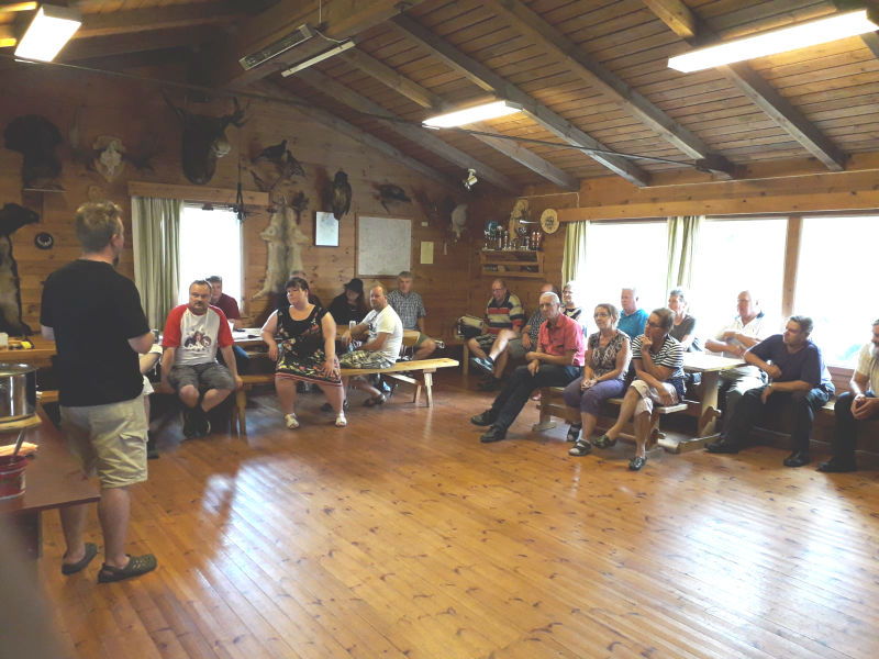 Aamupäivällä kisailimme leikkimielisesti jousiammunnassa, tikanheitossa ja kalastuksessa. Kisailun jälkeen oli vuorossa lounas. Tarjolla oli maukasta hernekeittoa ja jälkiruuaksi lettuja. Iltapäivällä oli muodollisemman osuuden vuoro. Kaakon Beaglen puheenjohtaja Mikko Forsell piti puheen, jonka jälkeen sana oli vapaa ja kuultiin lisää hienoja puheita ja tarinoita Kaakon Beaglen 50-vuotiselta taipaleelta.