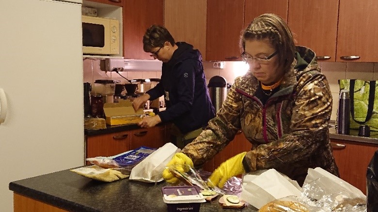 Näillä ylituomari Halisen saatesanoilla ja hyvän tuloksien toivotuksilla siirtyivät ryhmät arvottuihin maastoihin. Matkat olivatkin kaikilla lyhyitä, joten aikaa runsaan aamupalan nutustamiseen jäi sopivasti.