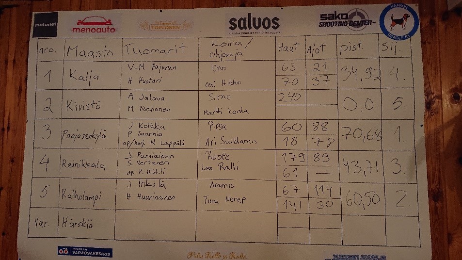 Kaakon Beagle ry kiittää maastoja luovuttaneita seuroja, tuomareita ja yhteistyötyökumppaneita tuesta onnistuneen pm-kokeen läpiviemiseksi.