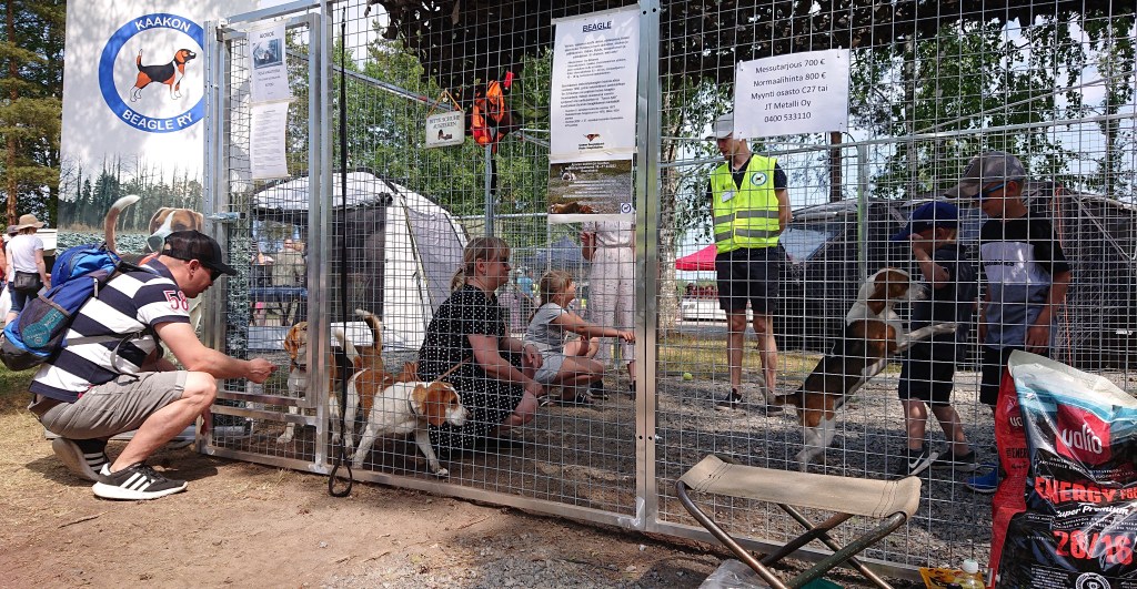 koiratarhat. Beaglein rapsuttelu sujui, niin lasten kuin aikuistenkin osalta turvallisesti