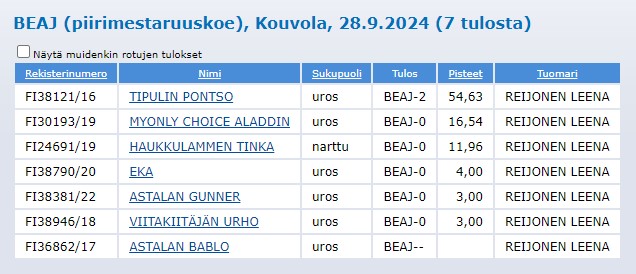 Enäjärvelle kilvoittelemaan Kymenläänin kennelpiirin beaglein piirinmestaruudesta.