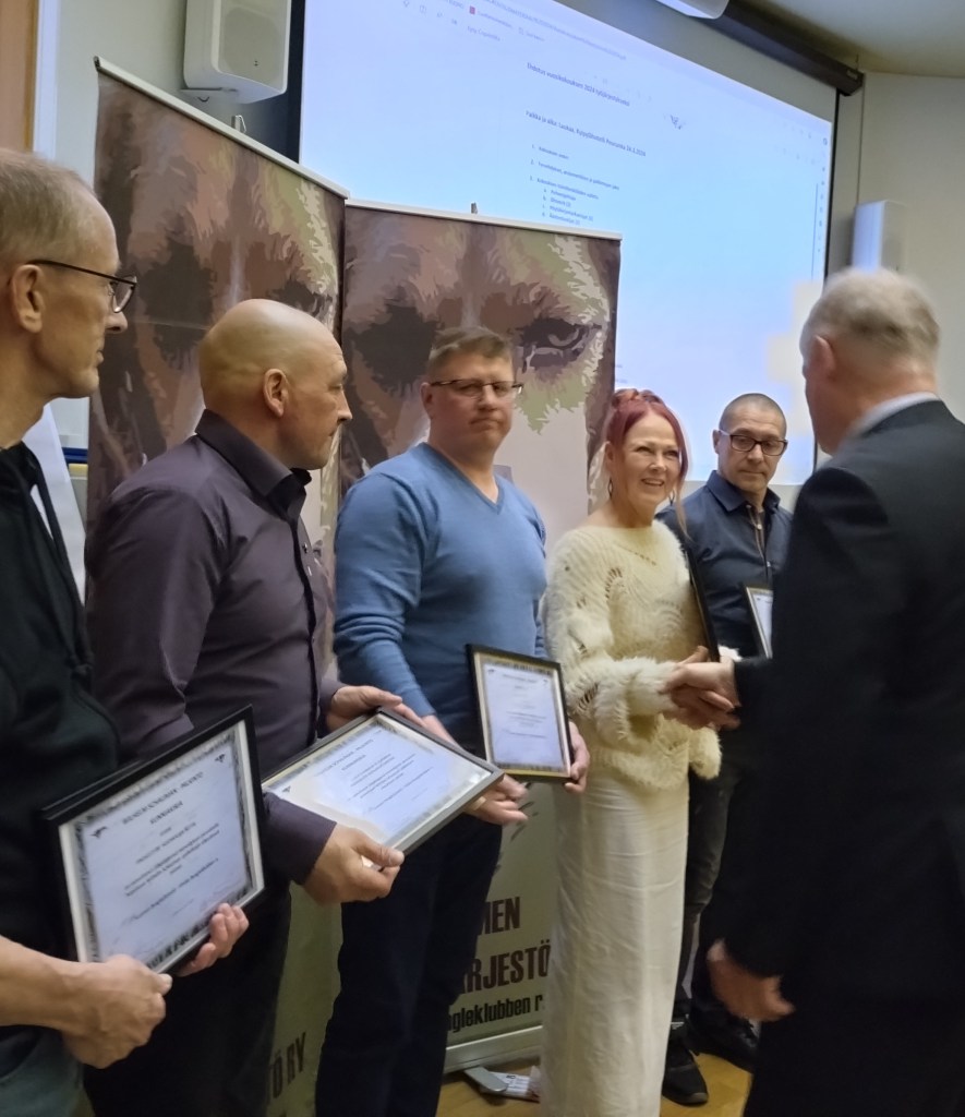 Tilaisuudessa näyttelytoimikunnan runkohenkilöstöä huomioitiin kannustinpalkinnoilla: Matti Nuija, Eerik Lepistö, Ossi Hilden, Pinja Eronen ja Pekka Askola.