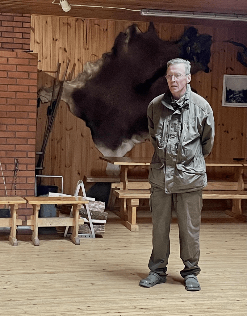 Kaakon beaglen pj Ossi Hilden antaa aamun avaussanat metsästysväelle