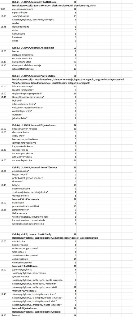 Näyttely on ULKONÄYTTELY (Kennelliiton poikkeuslupa koskien sisänäyttelyitä /huhtikuu 2022). Aikataulusta löydät sisällä arvosteltavat rodut. aikataulu